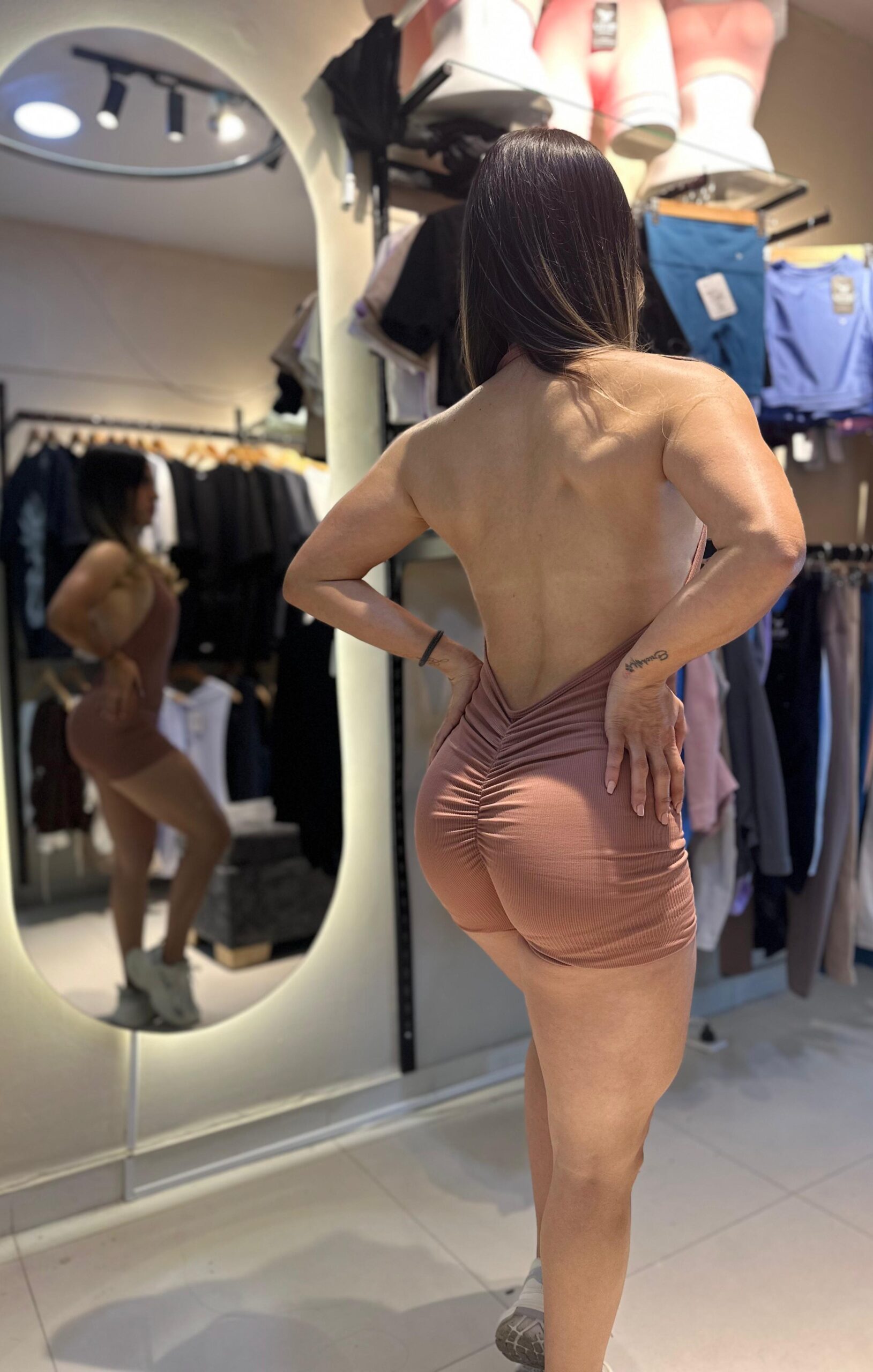 Enterizo halter corto, color nude